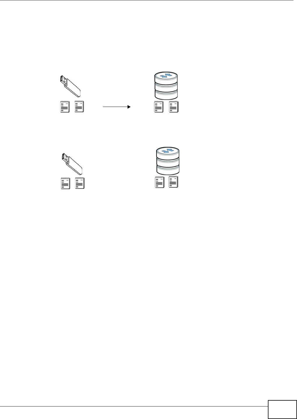 The following figure illustrates how synchronization works when you synchronize files from a USB
